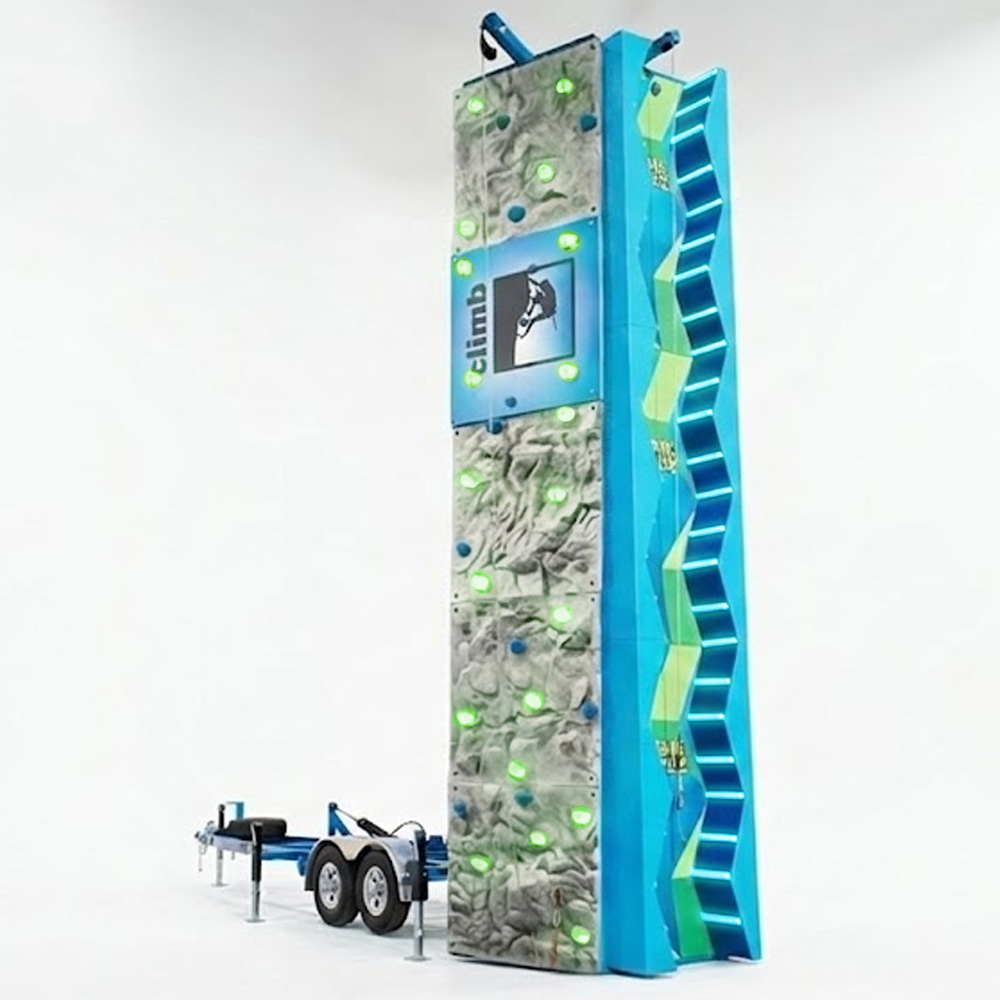 Klime Wallz puts a fresh spin on portable climbing walls, delivering a next-generation climbing experience. Featuring LED-lit holds and dynamic climbing elements, this attraction stands out both day and night. Its bold, colorful geometric design creates an eye-catching centerpiece for any event. Kids, teens, and adults alike will be drawn to the unique challenges inspired by Ninja Warrior–style obstacles and today’s most popular climbing trends.